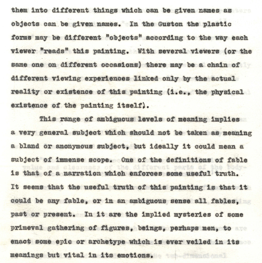 He then interprets Philip Guston’s “A Fable,” as an archetypal abstract painting: