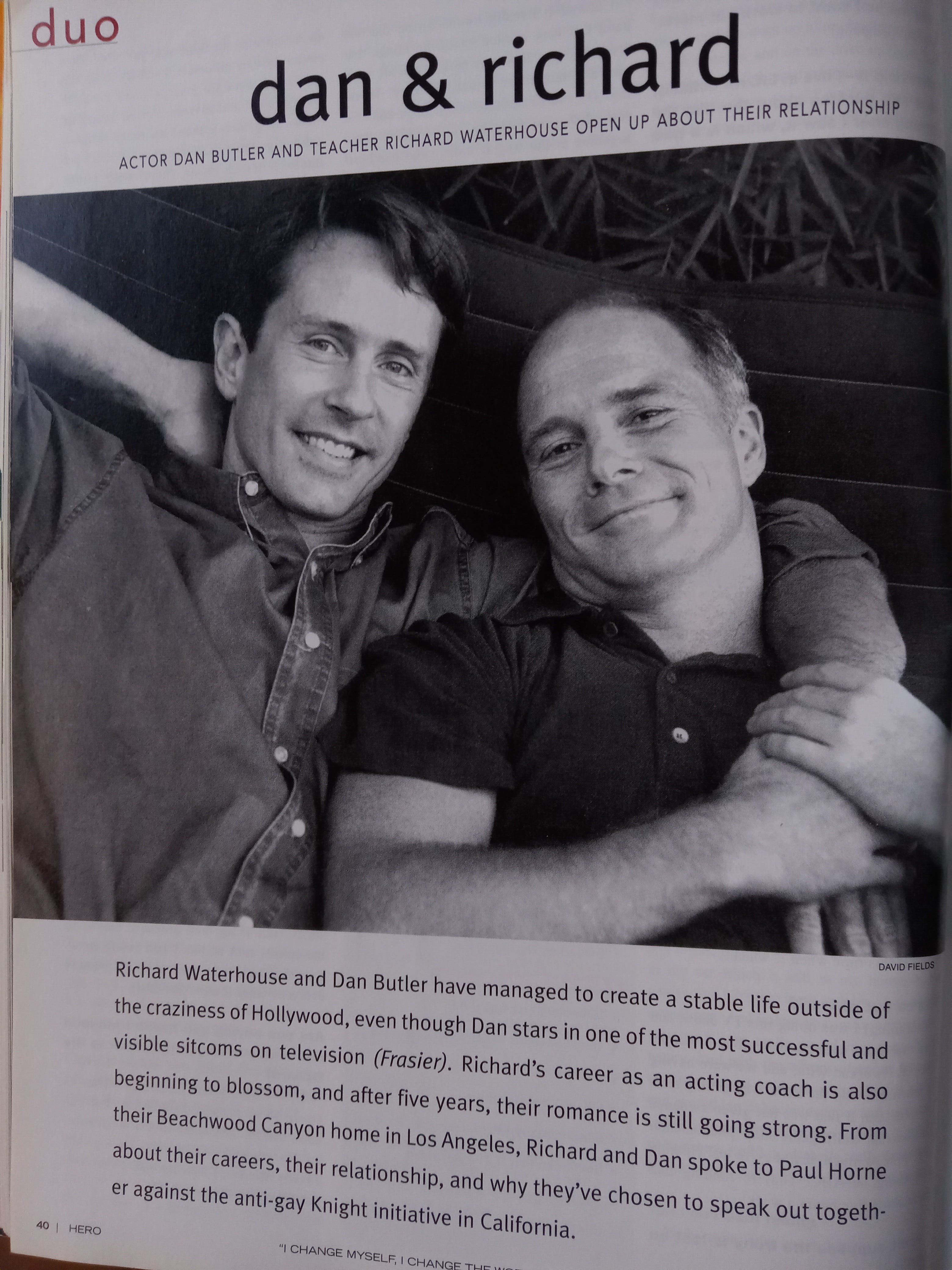For example, this piece on the gay monogamous life of Bulldog from Frasier is, I guess, sweet, but neither going to be of much use to gays trying to get their sexual-romantic lives together nor even of a reader looking for fun (fun is how Dan Butler describes couples’ therapy!).