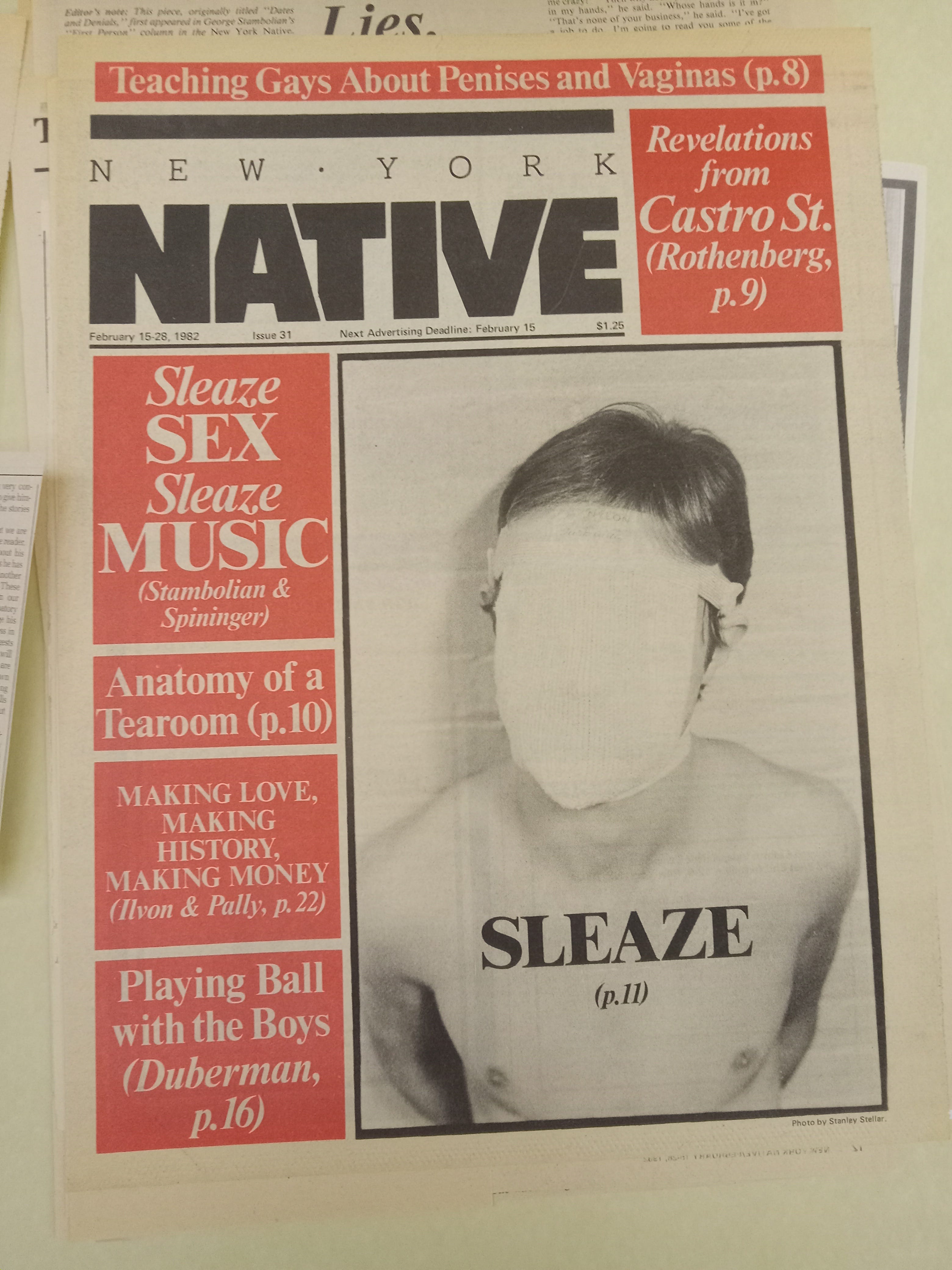And ok speaking of sleaze…a teaser for a future post featuring Stambolian’s rejoinder to Sontag, “Notes on Sleaze”: