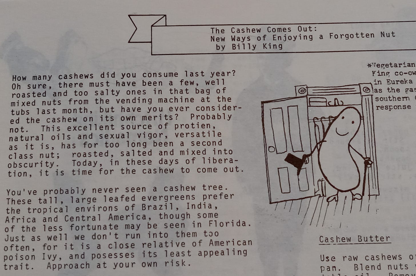 There’s some regular Whole Earth Catalog products-and-advice shit, like these features on kooky yurts and an apparently neglected nut: